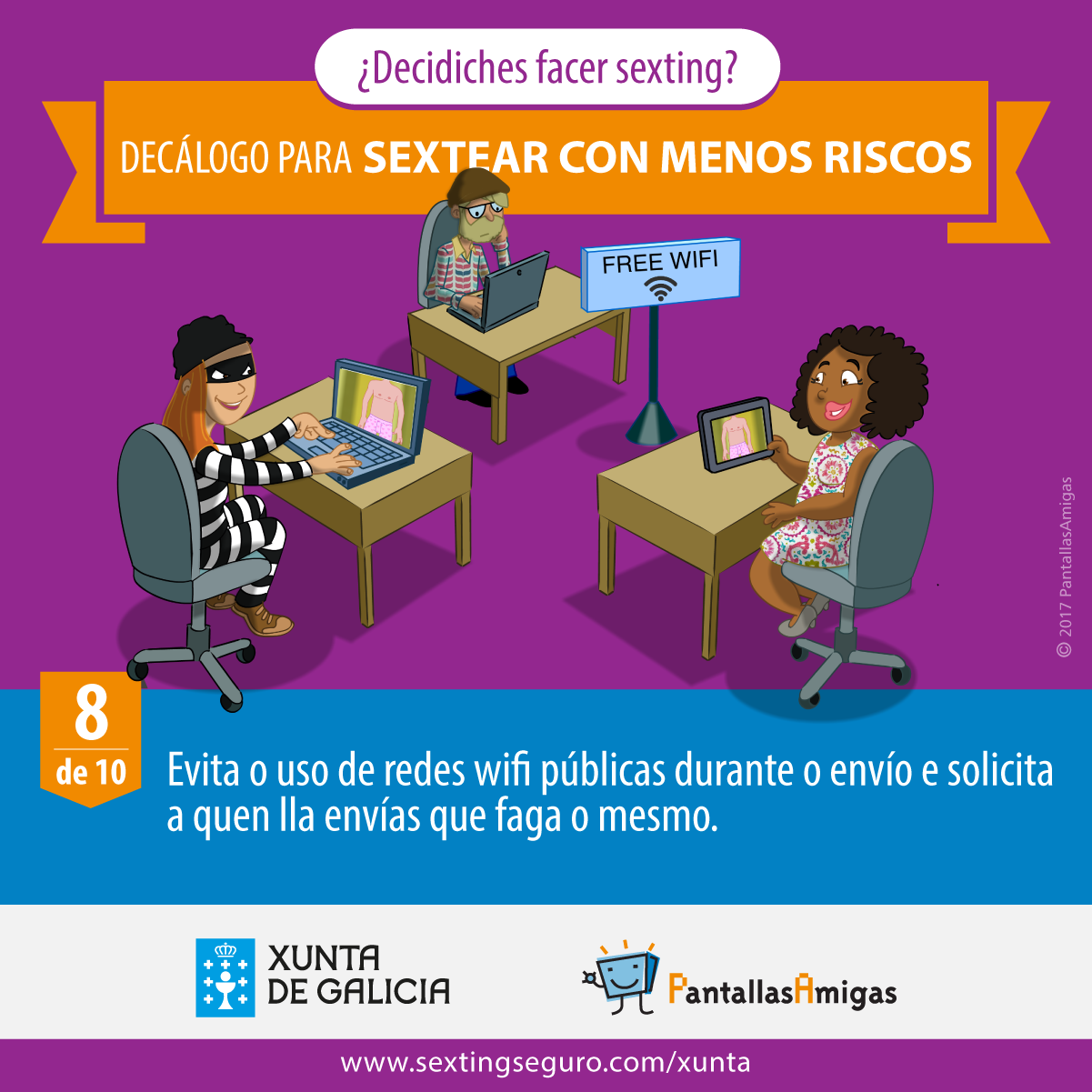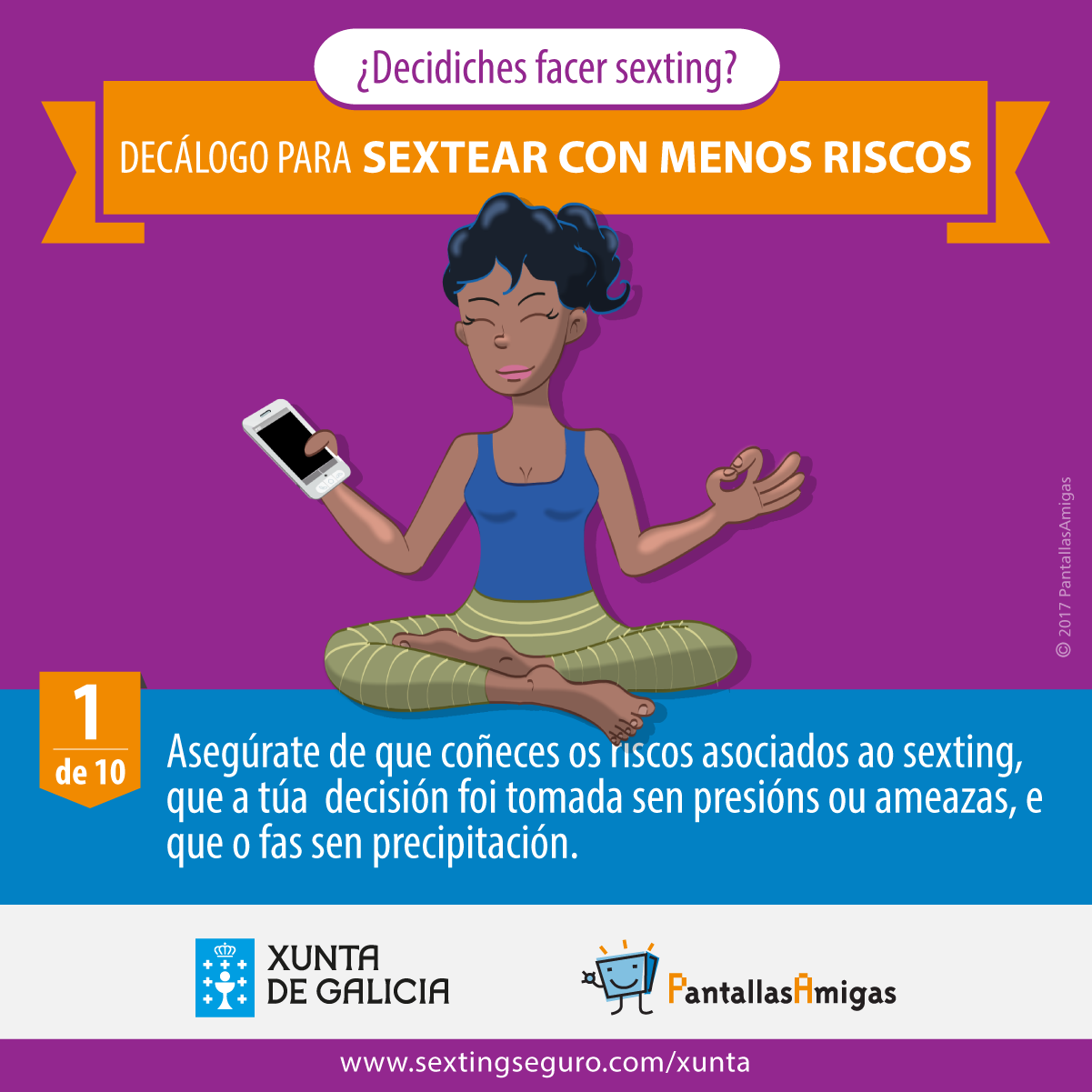 Sextear é unha práctica que, con crecente prevalencia, forma parte das relacións entre persoas dun abano de idades cada vez máis amplo pero que debe considerarse de risco dado que a persoa que o realiza en moitas ocasións resulta vitimizada. Os danos que sufre a vítima son en moitas ocasións realmente graves e irreparables e por iso o esforzo de PantallasAmigas e da Xunta de Galicia en evitalos.